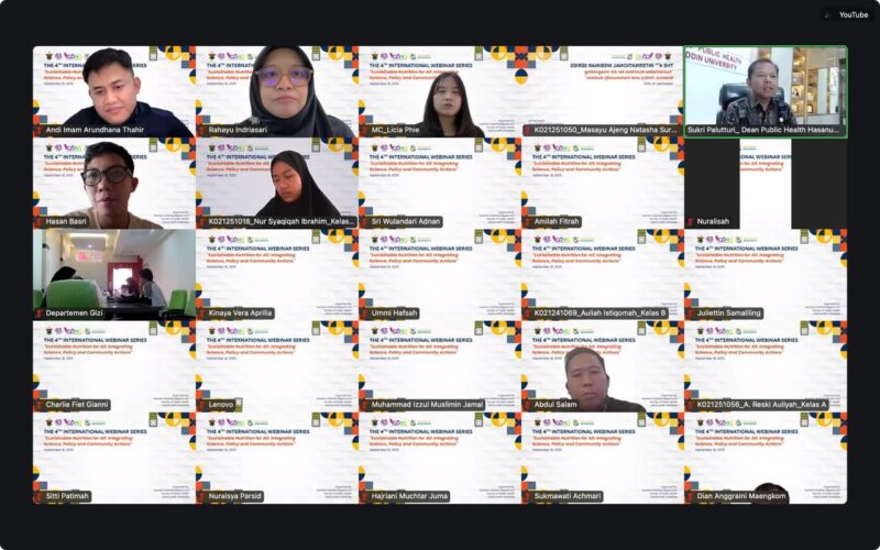 Makassar, 18 September 2025 – Departemen Ilmu Gizi, Fakultas Kesehatan Masyarakat Universitas Hasanuddin (FKM Unhas) kembali menegaskan perannya sebagai pusat pengembangan ilmu pengetahuan dengan menyelenggarakan The 4th International Webinar Series, yang merupakan rangkaian dari The 3rd International Conference on Nutrition and Public Health (ICNPH). Kegiatan ini mengusung tema “Sustainable Nutrition for All: Integrating Science, Policy, and Community Actions” dan berlangsung pada Kamis, 18 September 2025, pukul 08.00–13.00 WITA melalui platform Zoom serta siaran langsung YouTube FKM Unhas. Webinar ini menghadirkan tiga pembicara terkemuka di bidang gizi, yaitu Dr. Yasmin Ooi Beng Hou (Faculty of Science and Nutrition, University Malaysia Sabah), Helda Khusun, PhD (SEAMEO Regional Centre for Food and Nutrition), serta Sabaria Manti Battung, PhD (Departemen Ilmu Gizi, FKM Unhas). Acara dipandu oleh Laksmi Triassmita, S.Gz., MKM, dosen Departemen Ilmu Gizi, FKM Unhas, yang bertindak sebagai moderator. Dalam sambutannya, Ketua Departemen Ilmu Gizi FKM Unhas, Andi Imam Arundhana, S.Gz., MPH., Ph.D, menyampaikan bahwa kegiatan ini merupakan seri keempat yang konsisten digelar oleh Departemen Ilmu Gizi. Ia menekankan pentingnya kegiatan ini sebagai ajang pembaruan pengetahuan terkini dalam bidang gizi sekaligus wadah kolaborasi lintas sektor. “Kegiatan ini tidak hanya memberikan wawasan terbaru, tetapi juga memperkuat jejaring kolaborasi dalam upaya meningkatkan status gizi masyarakat di Indonesia,” ujarnya.