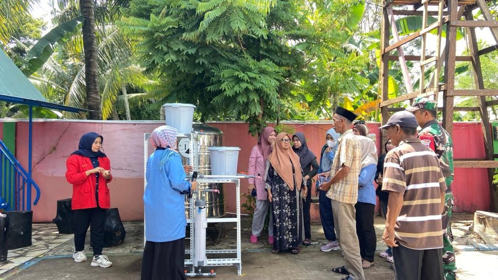 Kegiatan diawali dengan penyuluhan mengenai pentingnya air bersih bagi kesehatan dan prinsip dasar pengolahannya. Selanjutnya, masyarakat diajak untuk mempraktikkan langsung teknologi pengolahan air sederhana berbasis koagulasi-filtrasi dengan bahan alami, termasuk penggunaan biji kelor (Moringa oleifera) sebagai koagulan. Air kemudian disaring melalui lapisan arang aktif, batu apung, dan pasir silika, sehingga menghasilkan air yang lebih jernih dan bebas bau.