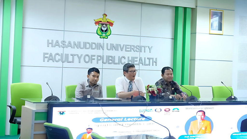 Makassar – 12 November 2024 Fakultas Kesehatan Masyarakat (FKM) Universitas Hasanuddin (Unhas) kembali menunjukkan komitmennya terhadap pengembangan ilmu kesehatan masyarakat dengan menyelenggarakan General Lecture bertajuk E-Sports and Health Care. Acara yang berlangsung pada Selasa, 12 November 2024, ini menghadirkan pakar kesehatan masyarakat internasional, Prof. Hideyuki Kanda, M.D., M.P.H., Ph.D., dari Okayama University, Jepang.